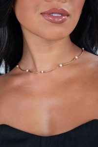 The Amber Gold Beaded Necklace features a minimalist silhouette with a hint of shine! This dainty necklace features a gold chain with colored beads and pearls. Style the Amber Necklace with any outfit to instantly upgrade your look! Gold Plated Beaded Pearls Lobster Clasp + ExtenderOne Size | Length 7.5” + 3″ Extender