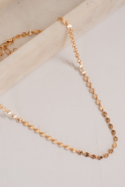 The Evelyn Gold Beaded Necklace instantly creates a put-together look whenever you accessorize with it! This dainty necklace features a gold beaded chain with “X” charms. Style the Evelyn Necklace with any outfit to instantly upgrade your look! Gold Plated Beaded “X” Charms Lobster Clasp + ExtenderOne Size | Length 7” + 3″ Extender